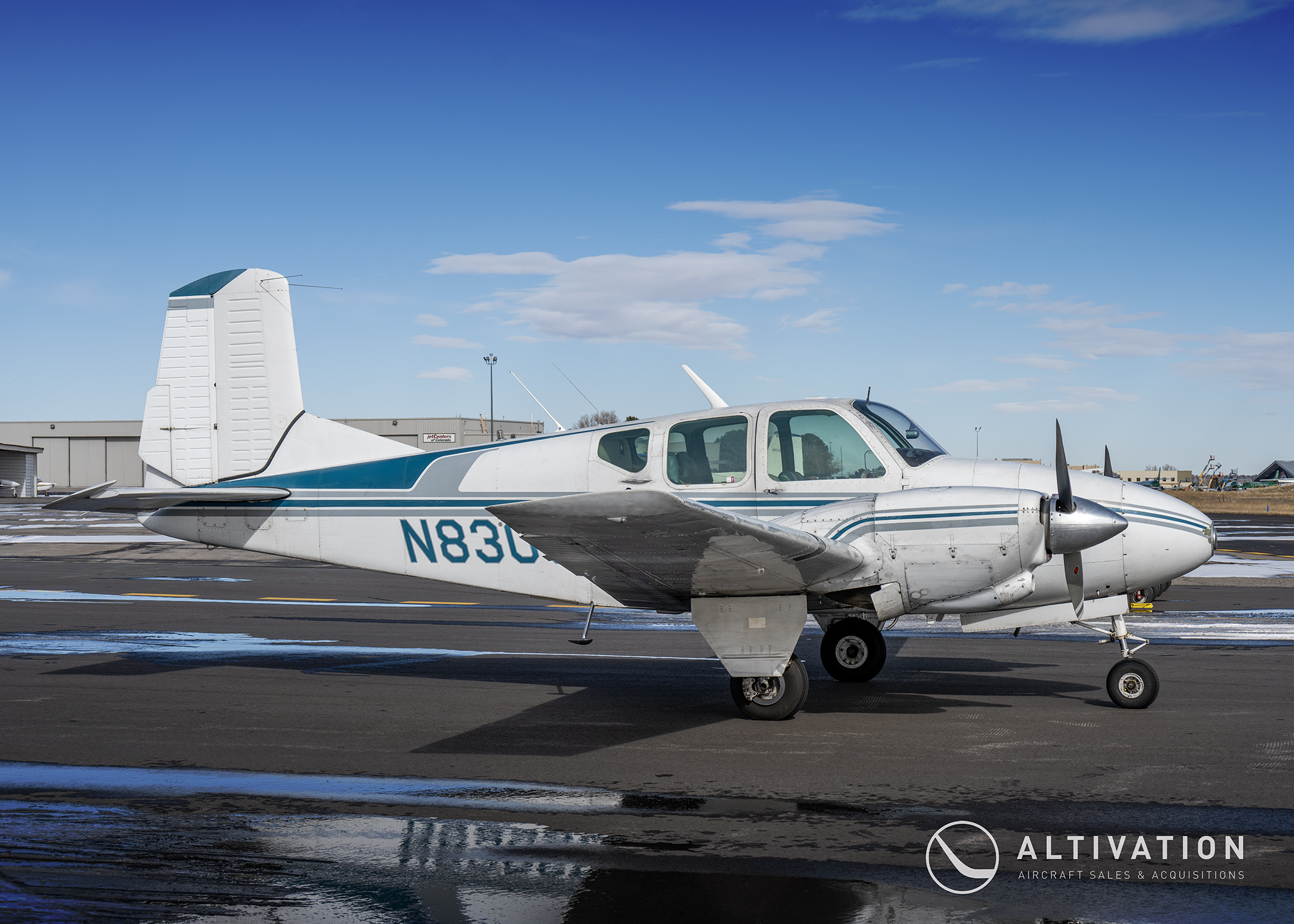 A classic Beech twin based at Centennial Airport in Colorado. This 1958 Beech Travel Air is equipped with a Garmin G5 EHSI/EADI, Garmin GNX 375 GPS with integrated transponder, Garmin GTR 255 COM, Garmin GMA 345 audio panel, and dual MVP-50 engine monitors.